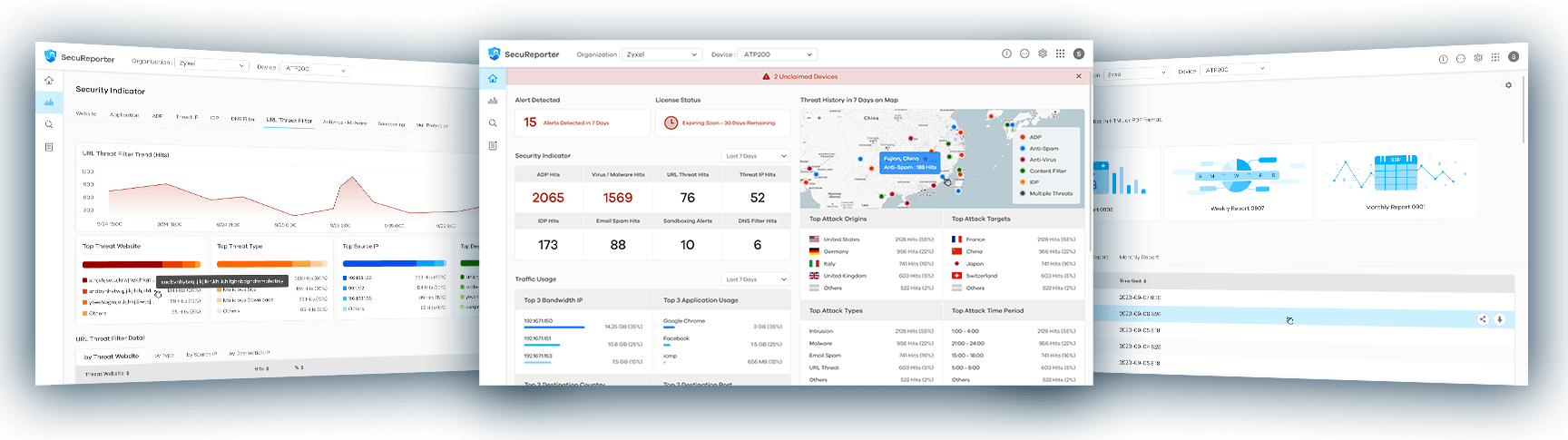 Wenn es um Cybersicherheit geht, ist die Analytik das letzte Teil des Puzzles, und sie wird mehr denn je benötigt. Der SecuReporter ist eines der besten und einfach auszuwertenden Produkte auf dem Markt. Er bietet eine intuitive Arbeitsoberfläche für IT-Experten. SecuReporter unterstützt die Netzwerkprodukte von Nebula und ermöglicht so eine schnelle Reaktion auf Sicherheitsereignisse, die in Ihren Access Points und Netzwerk-Switches auftreten.
